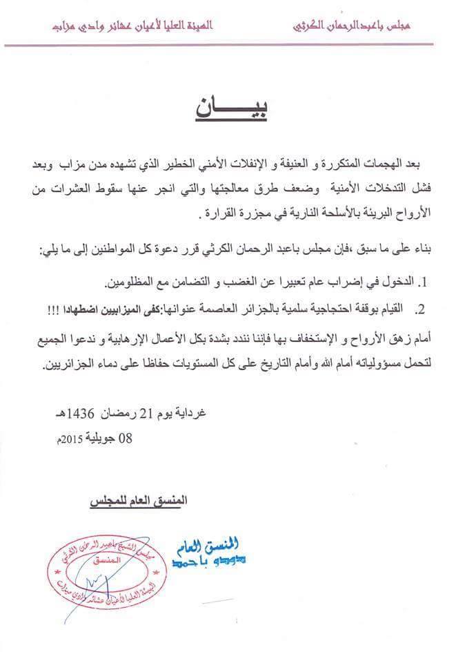 عريضة المطالب من المجتمع المدني المزابي الجزائري